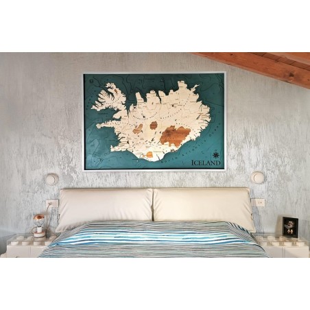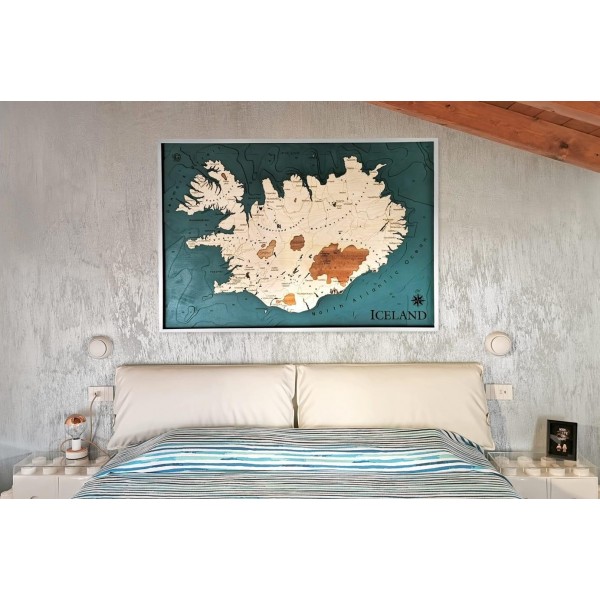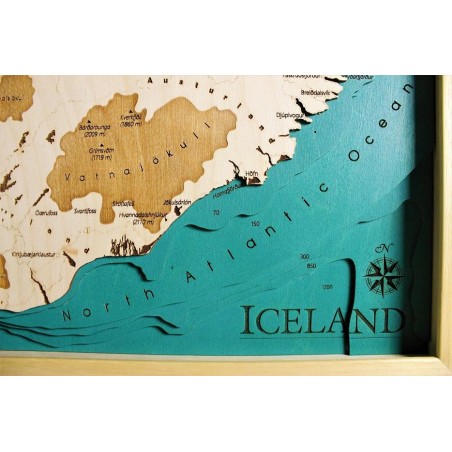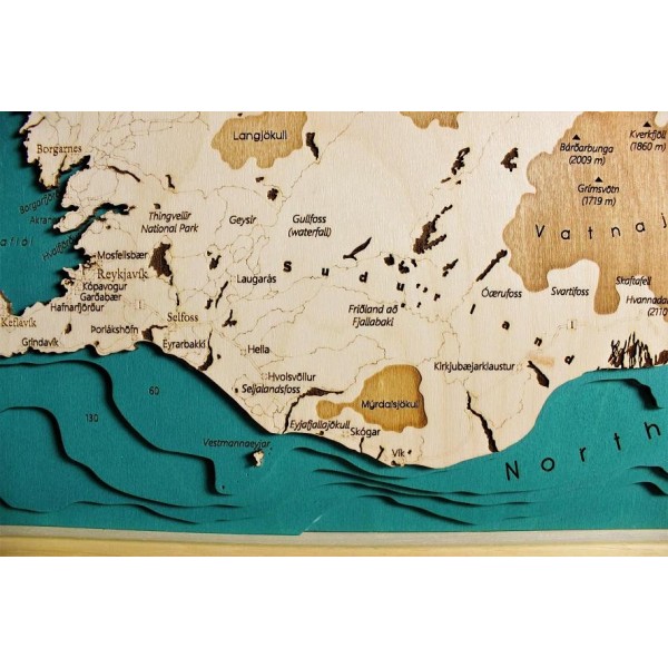 Iceland | Wooden Topographic Map Panel Chart 3D Laser Cut Gift Idea Christmas