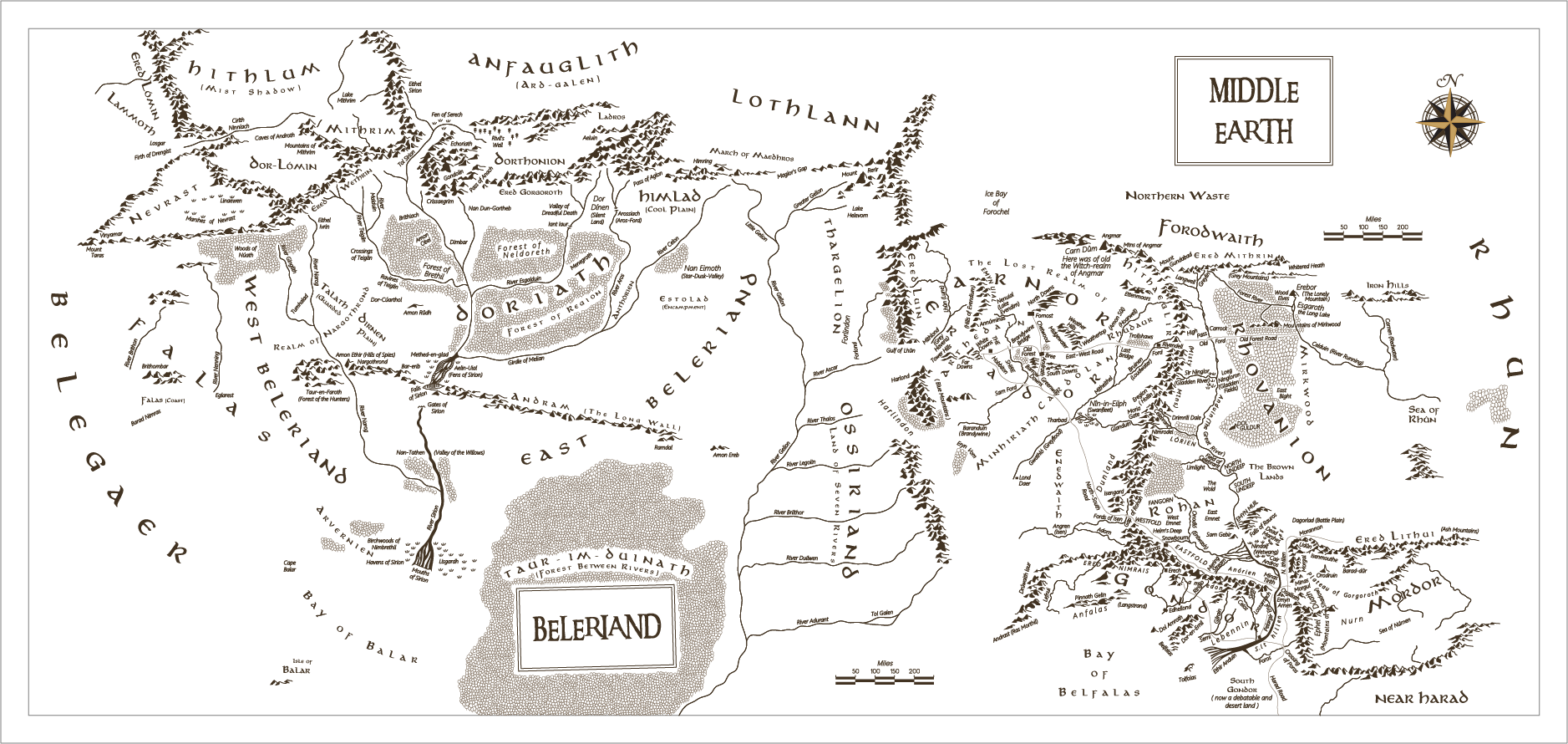 I've never seen a map covering both Beleriand and Middle Earth before so when I saw this I just had to get it. The art is amazing, it looks like it came straight from the maps in the Lord of the Rings books. The amount of detail is incredible and the color of the water really makes everything pop. I really wish I could describe how great it looks, but I'm no master poet like Tolkien. All I can say is it's totally worth having for any fan of the Silmarillion and Lord of the Rings.