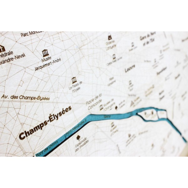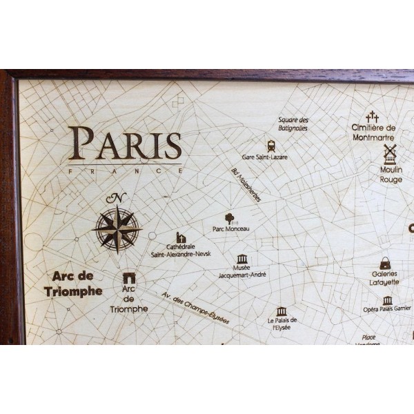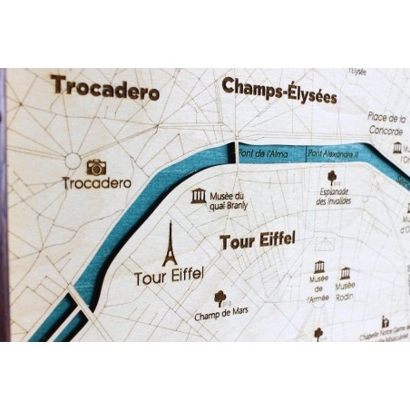 Paris | Wooden Topographic Map Panel Chart 3D Laser Cut Gift Idea Christmas