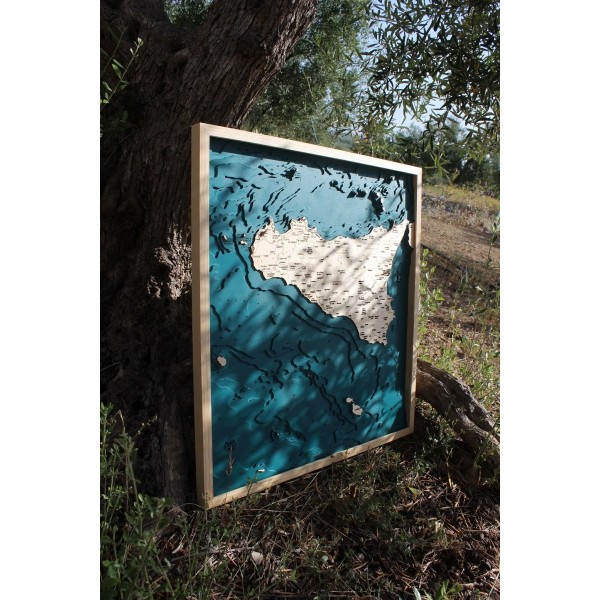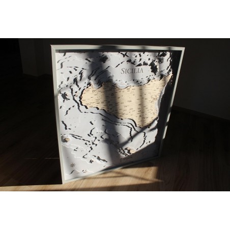 Sicily | Wooden Topographic Map Panel Chart 3D Laser Cut Gift Idea Christmas