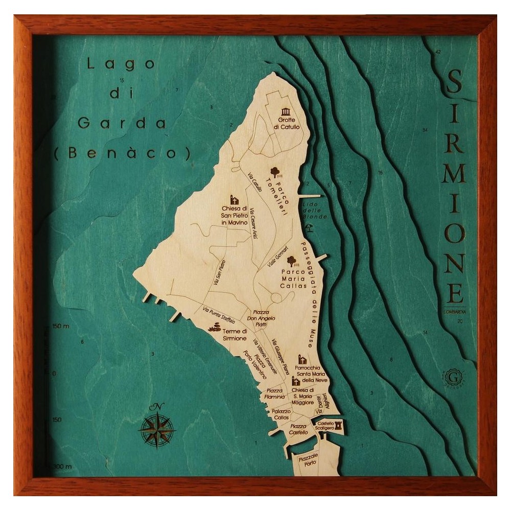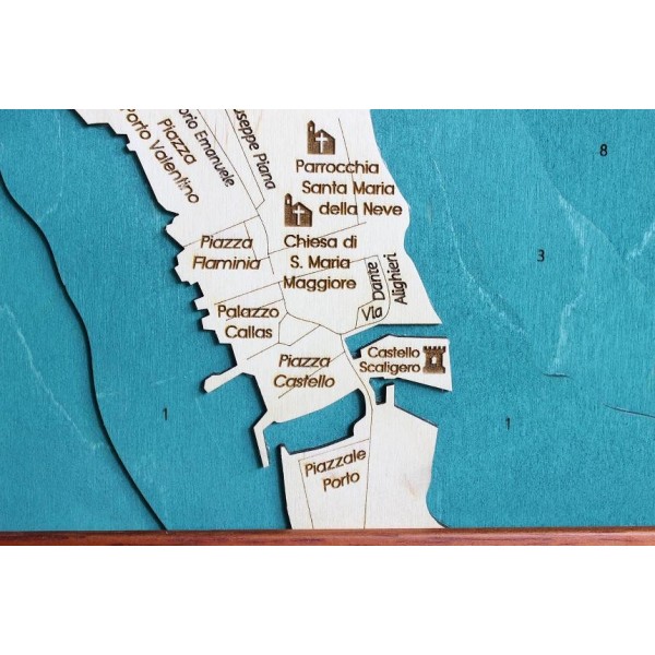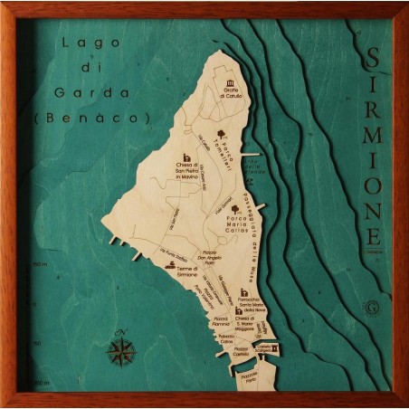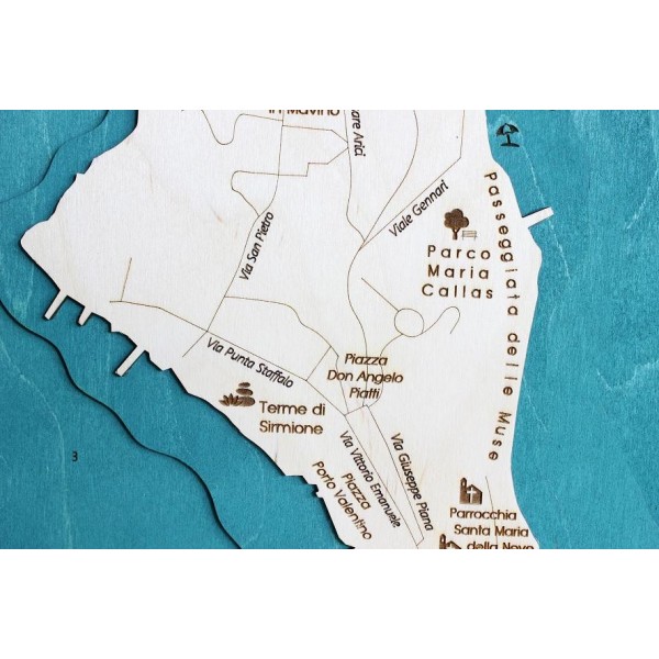 Sirmione | Wooden Topographic Map Panel Chart 3D Laser Cut Gift Idea Christmas
