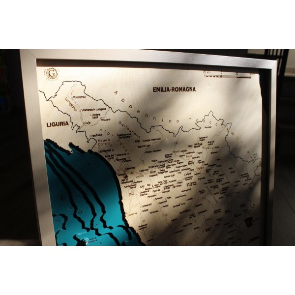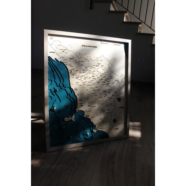 Our charts are 100% Made in Italy, the original design is the result of a deep study of the places represented, trough nautical and topographical maps which faithfully reproduce the physical and morphological characteristics of the area.