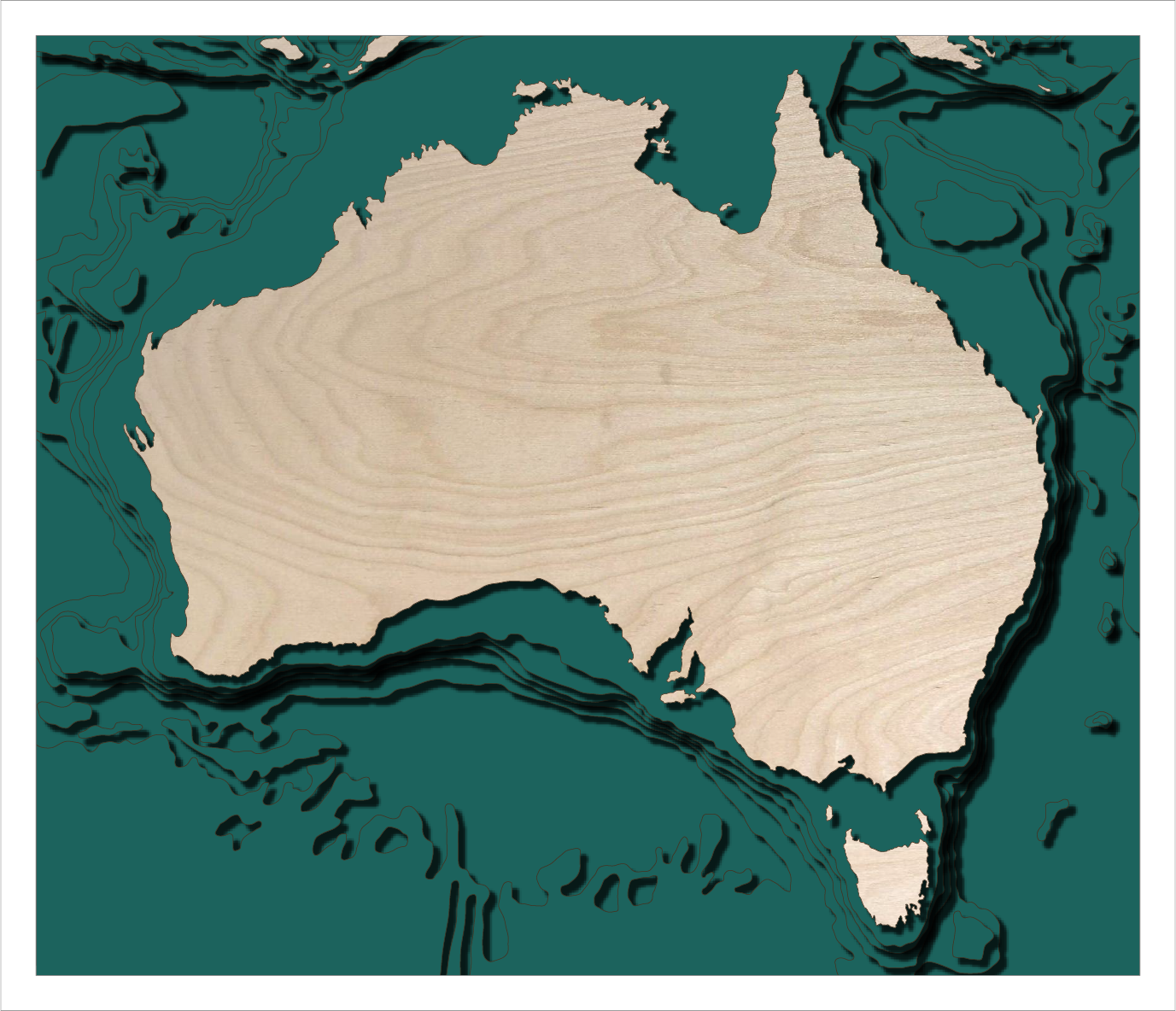 Le mappe si compongono in strati di legno di betulla, tagliati e incisi al laser, per conferire profondità visiva all'opera.