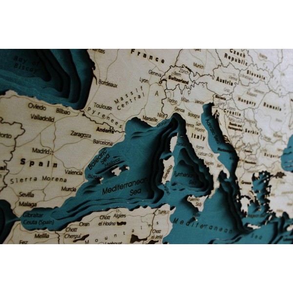 Europa | Mappa Topografica Quadro Cartina in Legno 3D Taglio Laser Cut Maps Idea Regalo