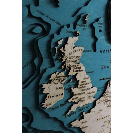Mappa dell'Europa | Versione Inglese Quadro 3D in legno Cartina topografica