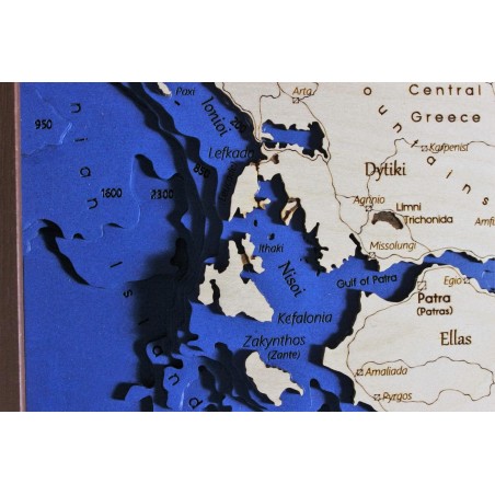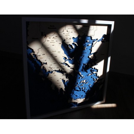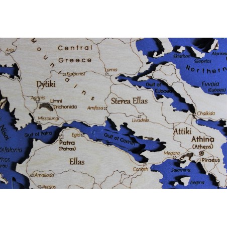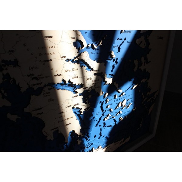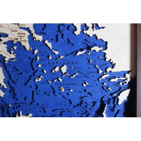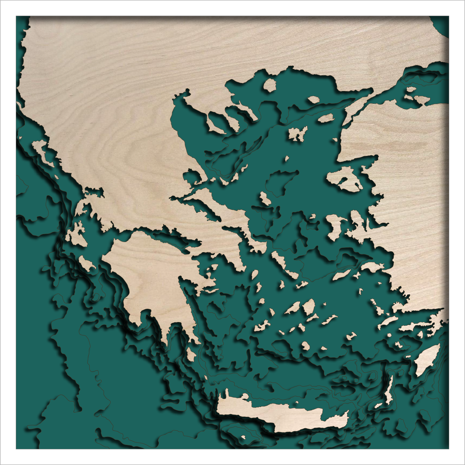 Le mappe si compongono in strati di legno di betulla, tagliati e incisi al laser, per conferire profondità visiva all'opera.