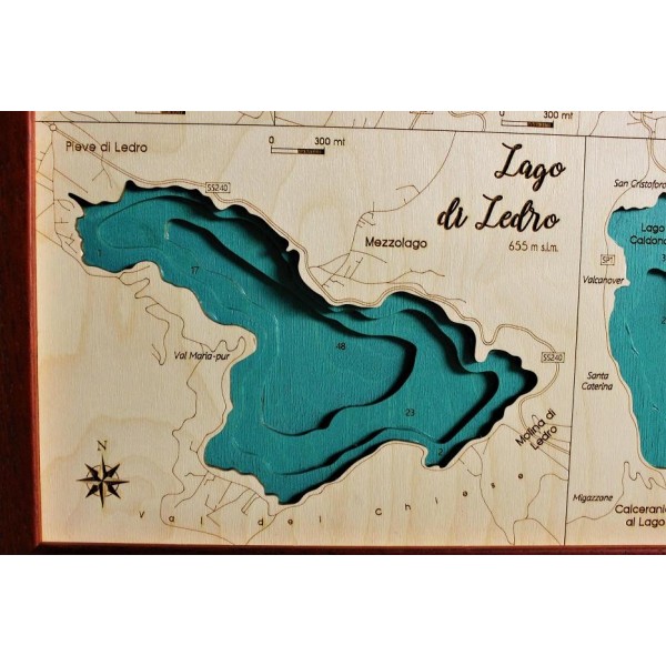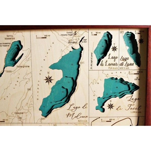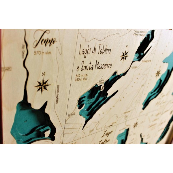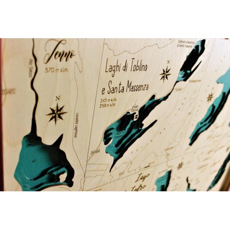 Laghi dell'Alto Adige | Mappa Topografica Quadro Cartina in Legno 3D Taglio Laser Cut Maps Idea Regalo