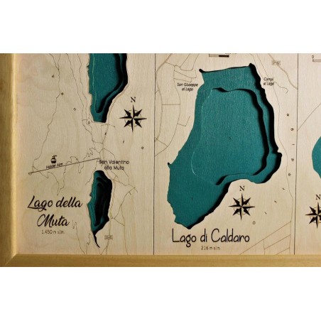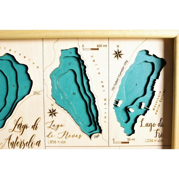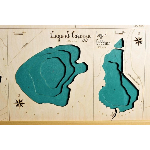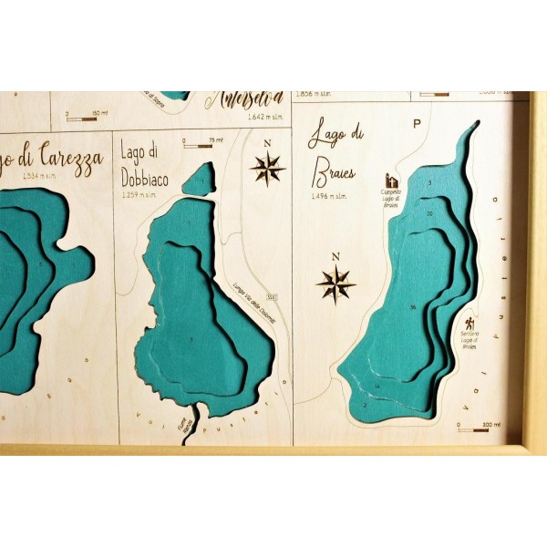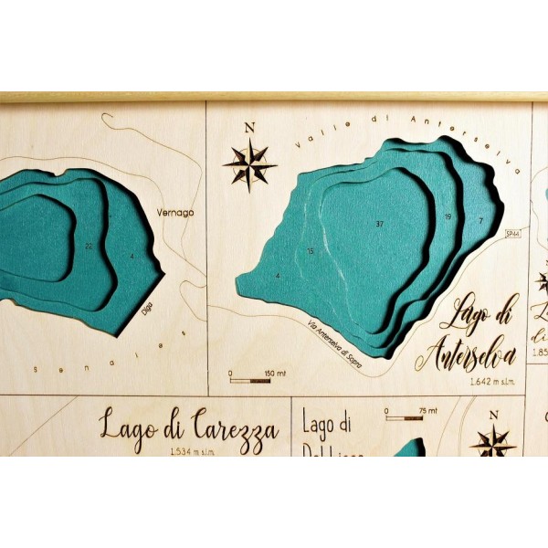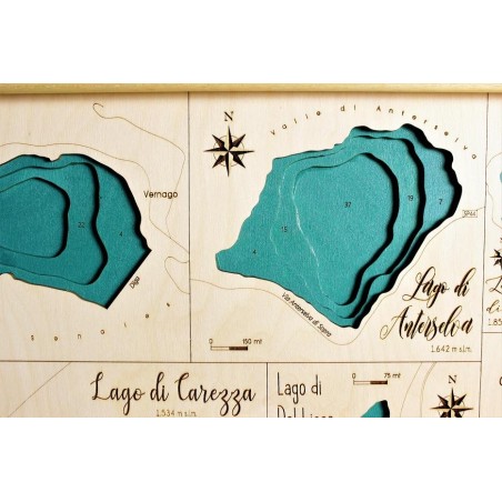 Laghi del Trentino | Mappa Topografica Quadro Cartina in Legno 3D Taglio Laser Cut Maps Idea Regalo