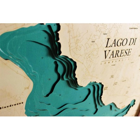 Lago di Varese | Mappa Topografica Quadro Cartina in Legno 3D Taglio Laser Cut Maps Idea Regalo