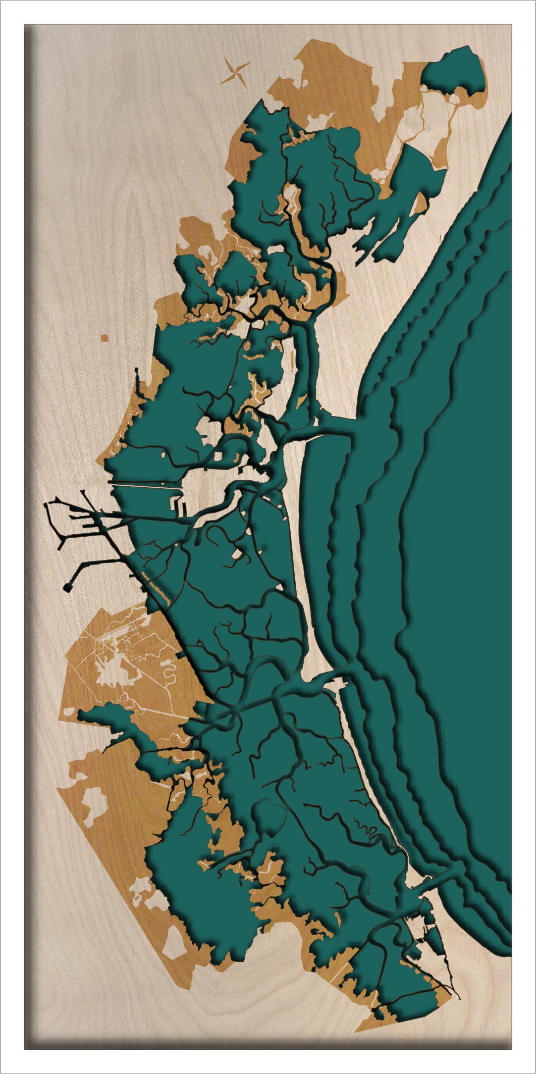 Le nostre mappe, uniche in assoluto nel loro genere, sono ottenute dallo studio approfondito del luogo attraverso cartine nautiche e topografiche, che riproducono fedelmente le caratteristiche fisiche e morfologiche della luogo rappresentato.
