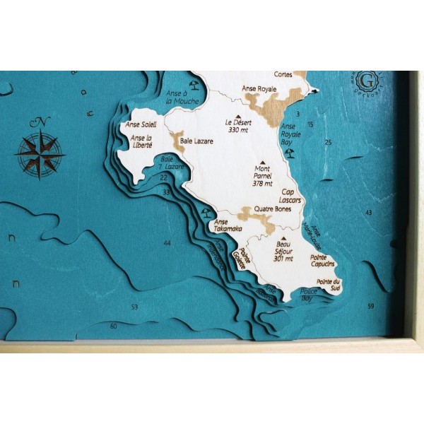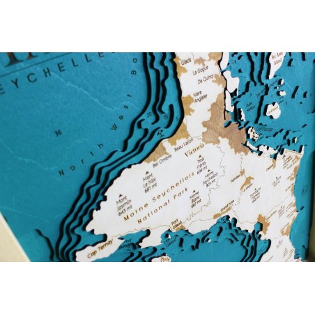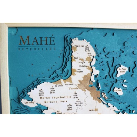 Mappa di Mahé (Seychelles) Quadro 3D in legno Cartina topografica