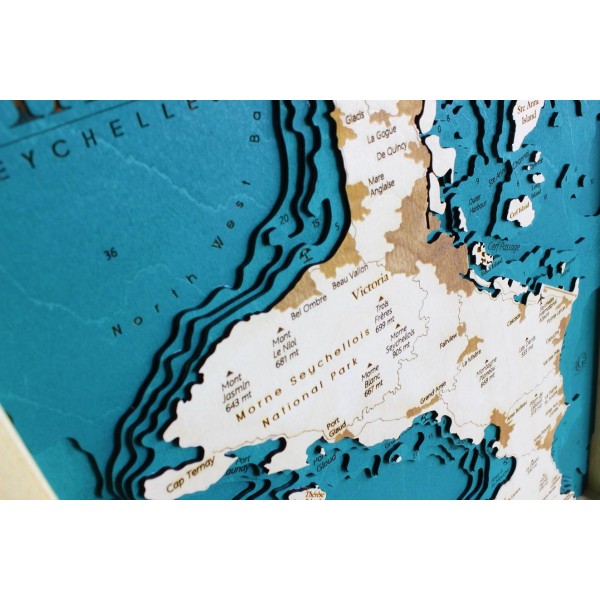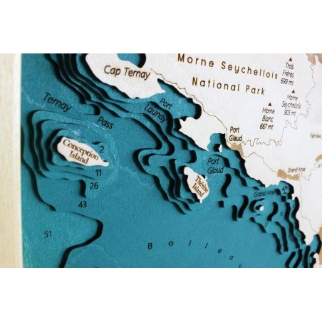 Mahé (Seychelles) | Mappa Topografica Quadro Cartina in Legno 3D Taglio Laser Cut Maps Idea Regalo