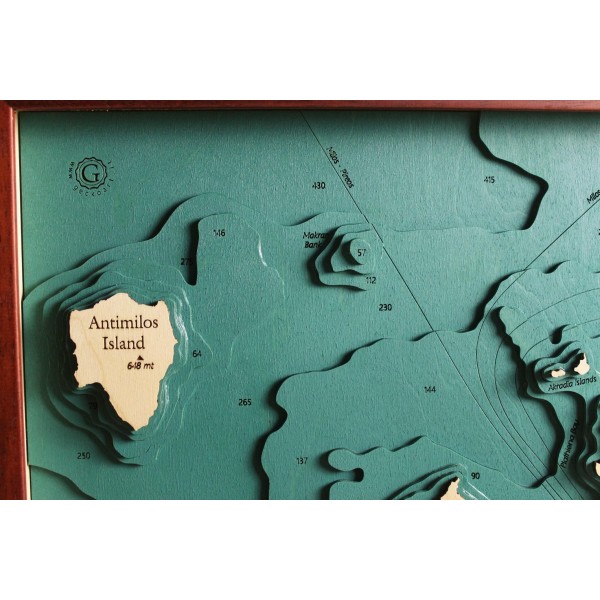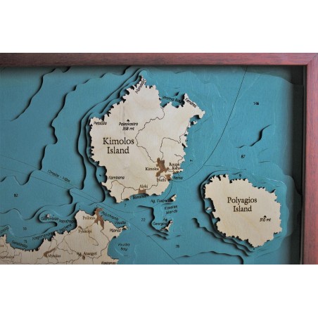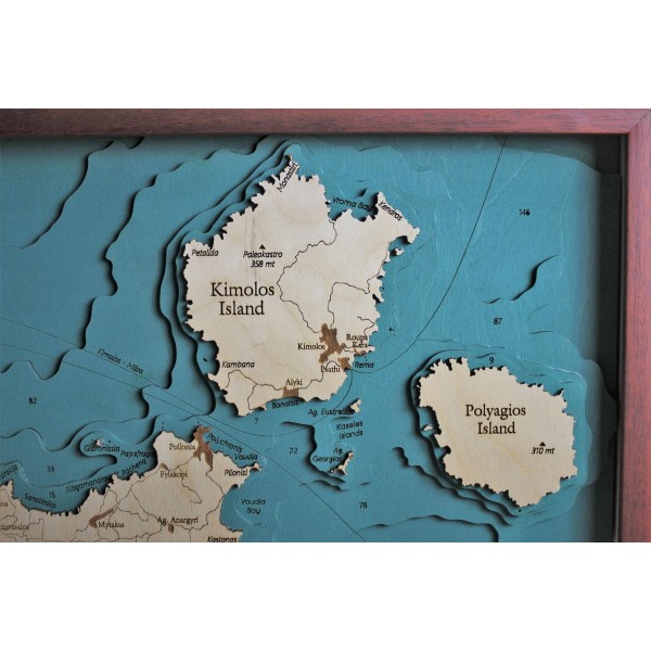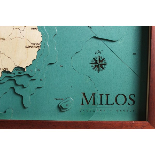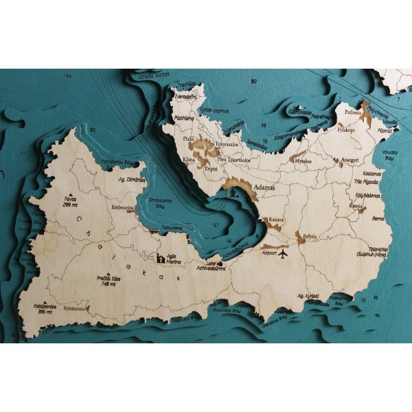 Milos (Grecia) | Mappa Topografica Quadro Cartina in Legno 3D Taglio Laser Cut Maps Idea Regalo