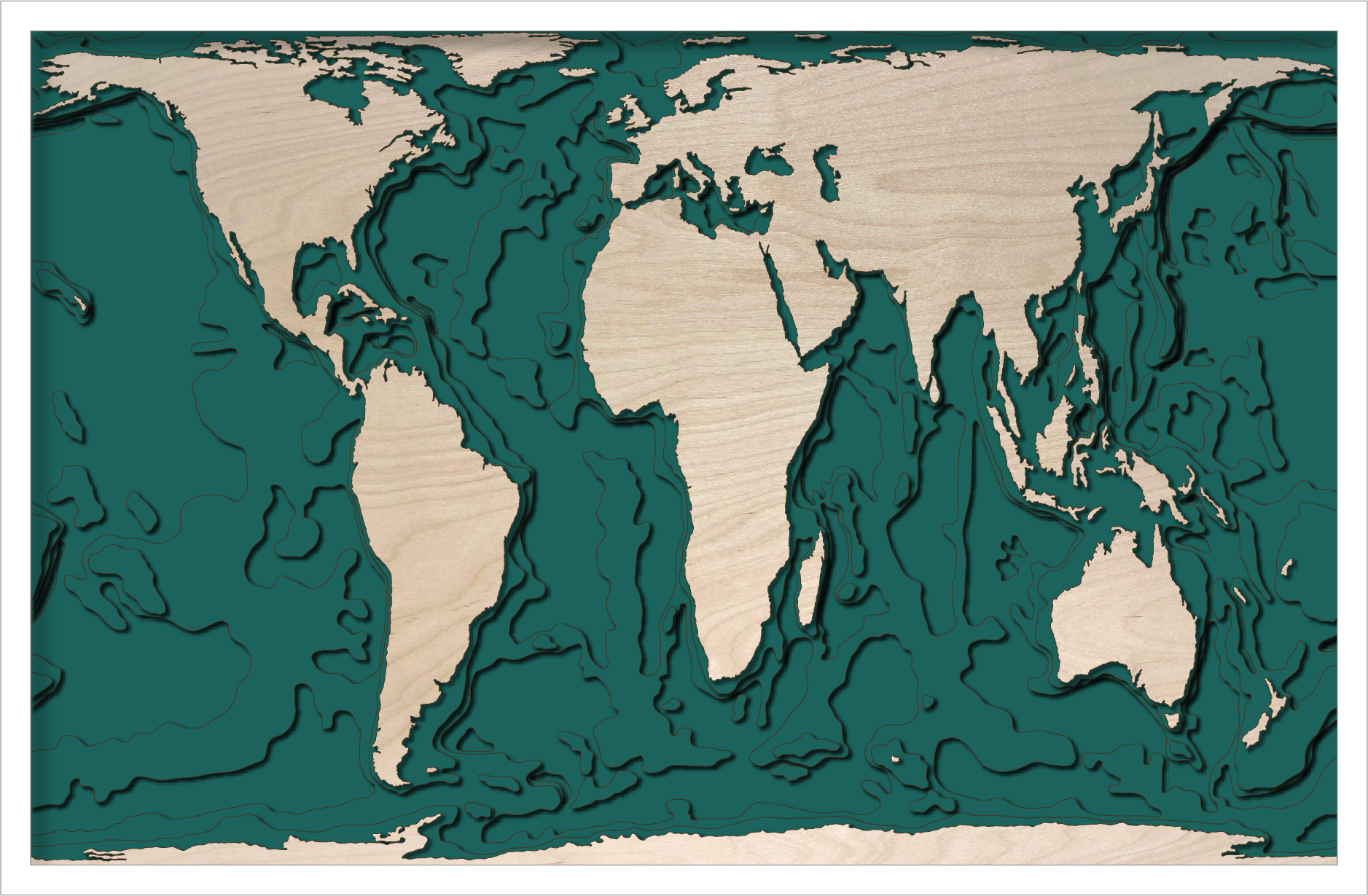 Mondo (Proiezione di Gall-Peters) | Mappa Topografica Quadro Cartina in Legno 3D Taglio Laser Cut Maps Idea Regalo
