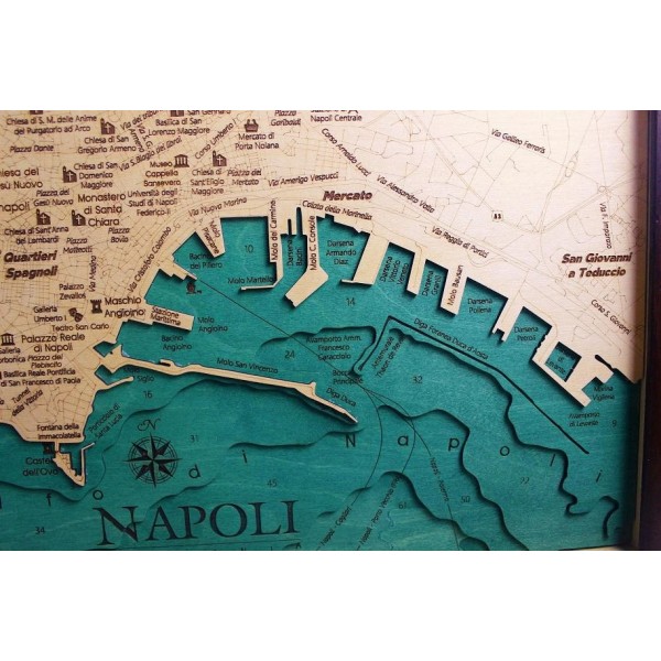 Le nostre mappe, uniche in assoluto nel loro genere, sono ottenute dallo studio approfondito del luogo attraverso cartine nautiche e topografiche, che riproducono fedelmente le caratteristiche fisiche e morfologiche della luogo rappresentato.