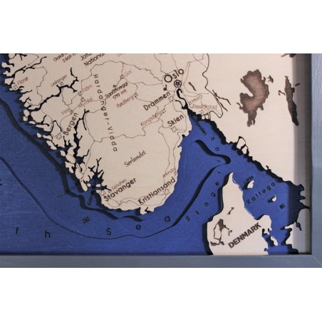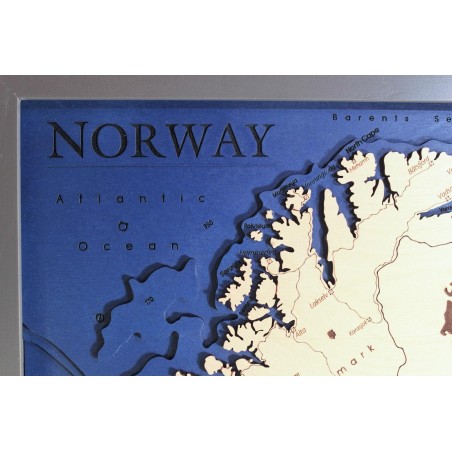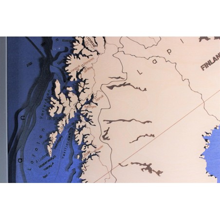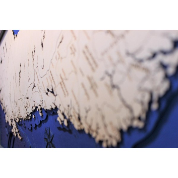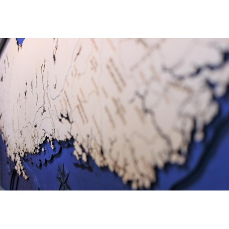 Le mappe si compongono in strati di legno di betulla, tagliati e incisi al laser, per conferire profondità visiva all'opera.