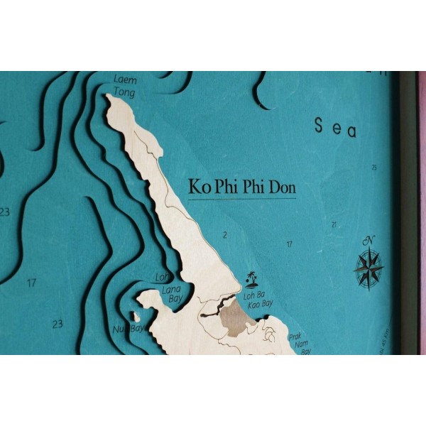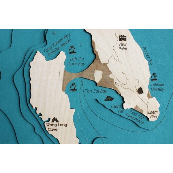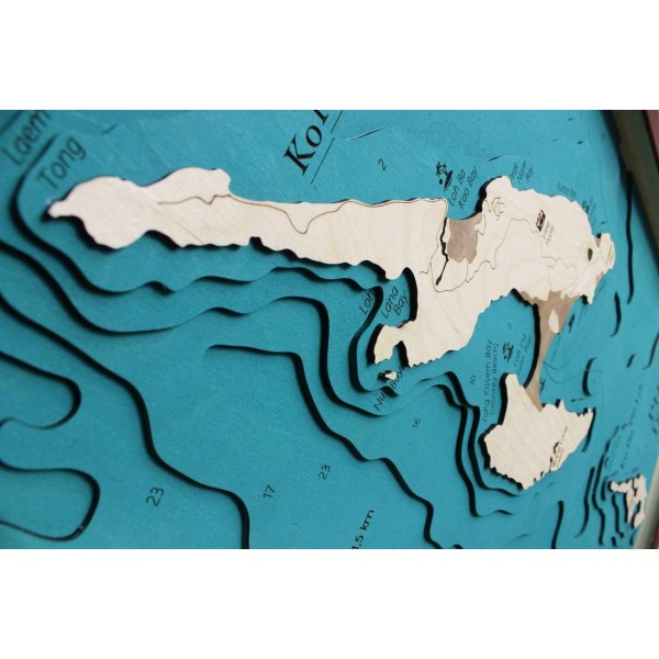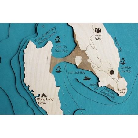 Bora Bora (Polinesia Francese) | Mappa Topografica Quadro Cartina in Legno 3D Taglio Laser Cut Maps Idea Regalo