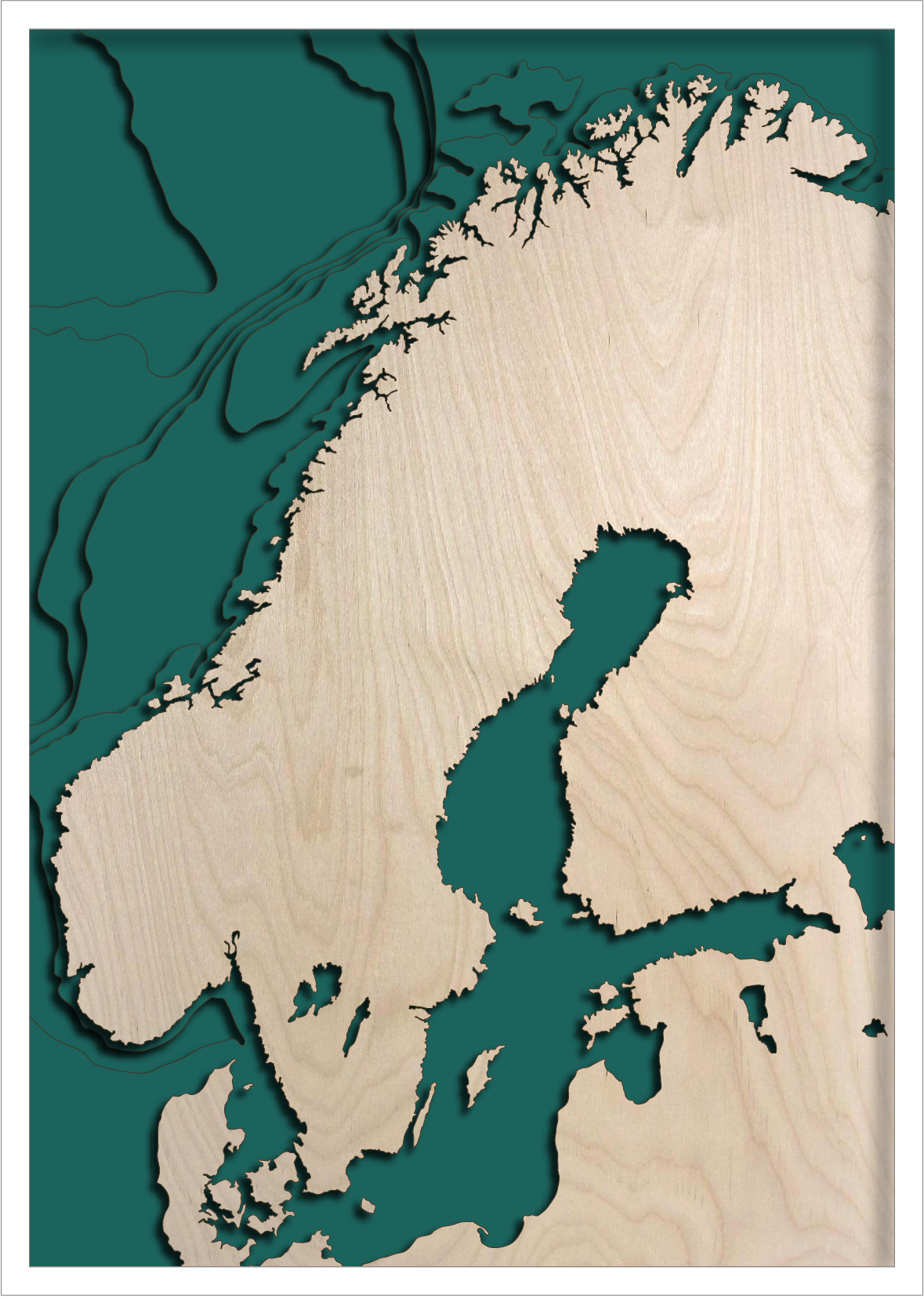 Le mappe si compongono in strati di legno di betulla, tagliati e incisi al laser, per conferire profondità visiva all'opera.