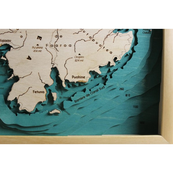 Bora Bora (Polinesia Francese) | Mappa Topografica Quadro Cartina in Legno 3D Taglio Laser Cut Maps Idea Regalo